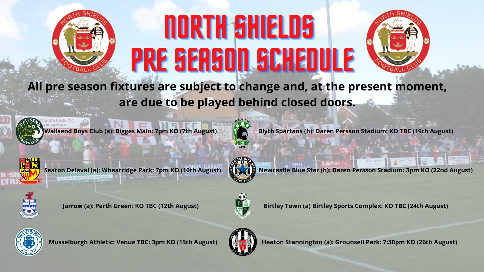 North Shields Football Club are pleased to release our pre-season schedule after receiving promising guidance from The FA and Government about competitive training being able to start and Friendlies to start in August.